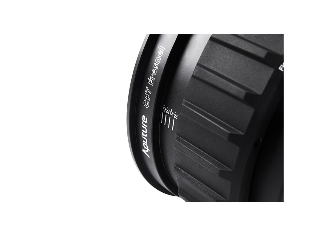 CF7 Fresnel ve Barndoor Kiti, Bowens Mount uyumlu 7 inçlik bir fresnel olup 8 yapraklı barn doors ile birlikte gelir. 15º–40º arasında ayarlanabilir bir ışık açısı sunarken kompakt bir tasarımı korur. Çoklu mercek elemanlarına sahip çift açılan odaklama sistemi, optik performanstan ödün vermeden boyut ve ağırlığı önemli ölçüde azaltır. Kompakt yapısı özellikle STORM 400x ile kullanım için optimize edilmiştir.